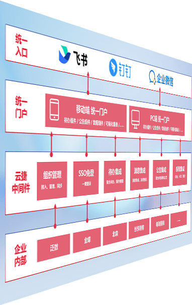 对协作平台提供支持服务,,支持企业应用与协作平台对接,,,包含组织同步、、、、消息集成、、待办集成等。。支持目前主流的协作平台:钉钉、、、企微和飞书。。。。